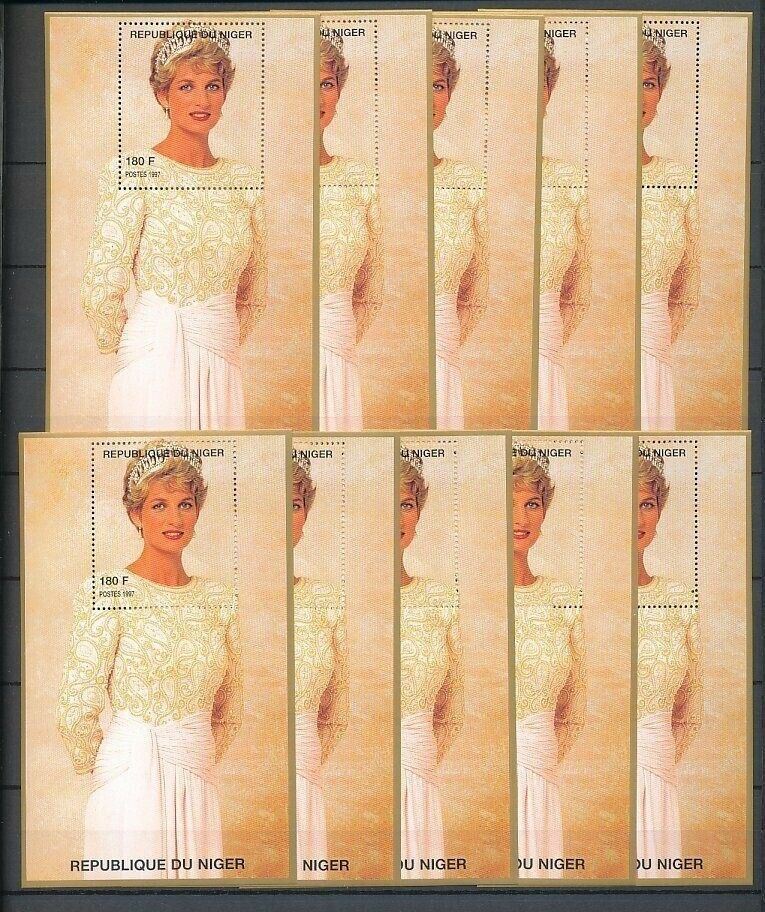 LADY DIANA NIGER 1997 White Dress Tiara MNH Minisheets 10x [D167]