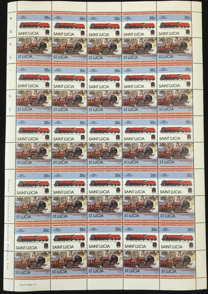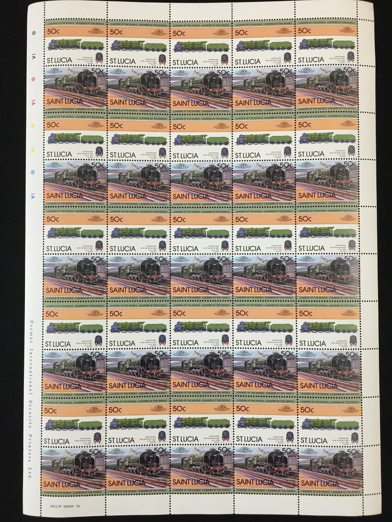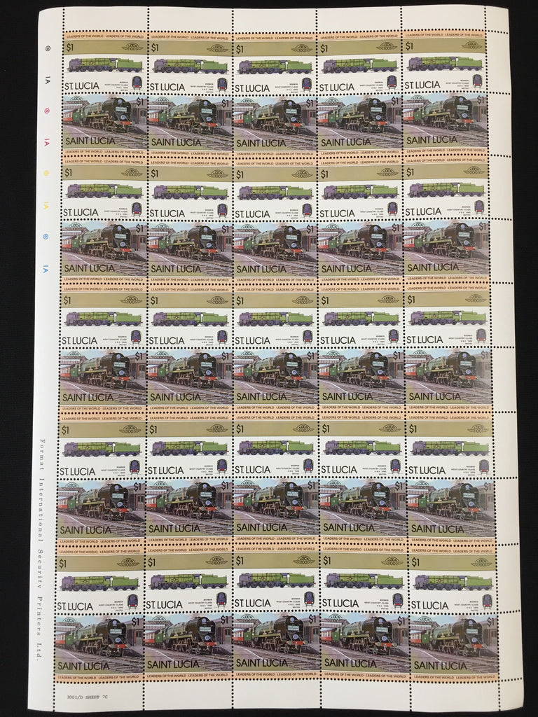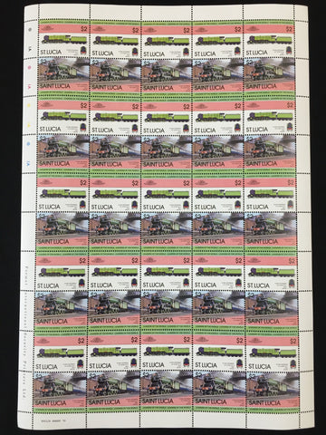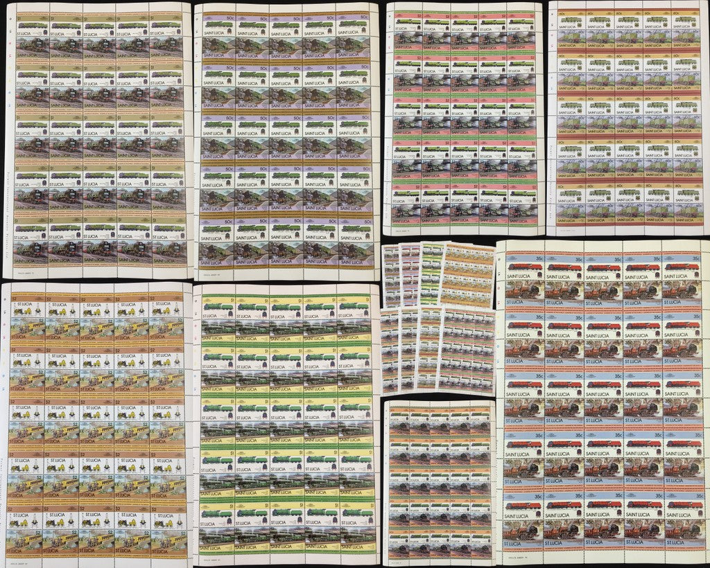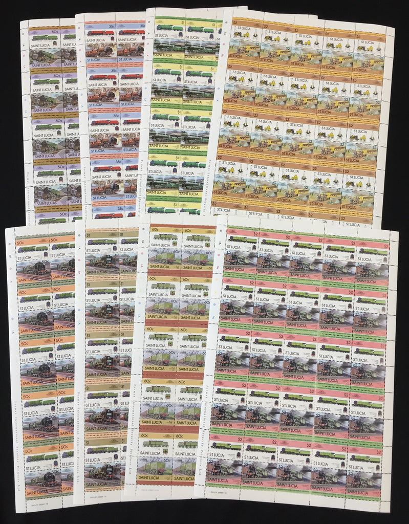 ST LUCIA Trains Locomotives Sheets x 8 MNH (BLK66 )
